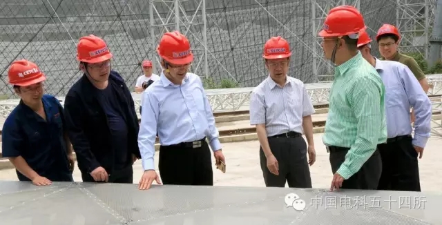 5月12日,中国电科总经理樊友山,前往位于贵州省黔南州平塘县大窝凼的500米口径球面射电望远镜(FAST)项目工程建设现场,视察我所承担的关于“FAST天线面板研制、拼装以及馈源舱安装、调试等”的进展情况。